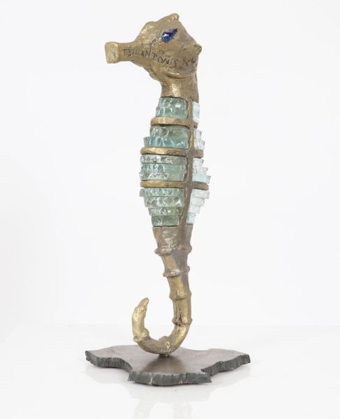 Seahorse in gilt bronze and glass. Signed on the muzzle.