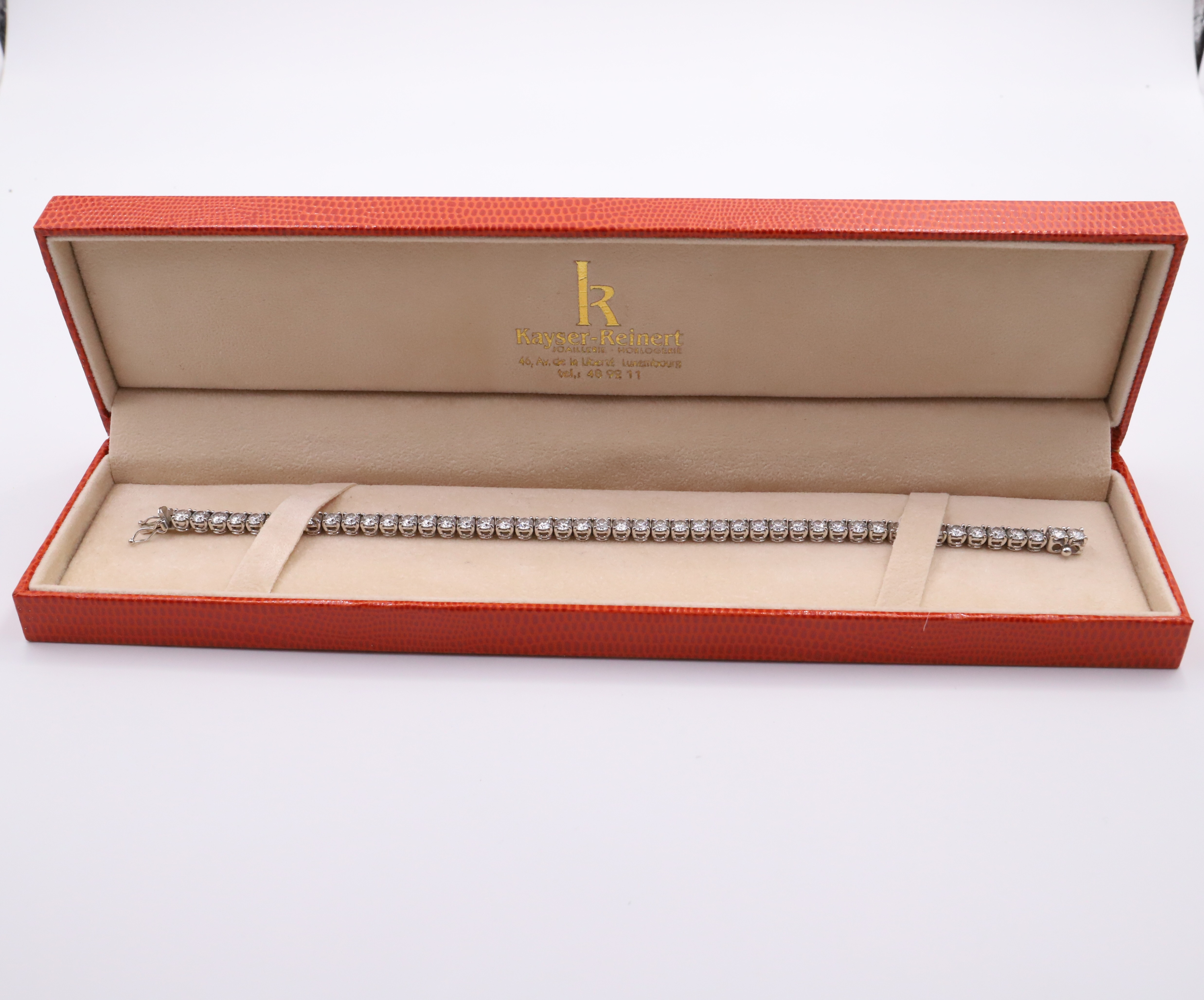 Bracelet rivière en or blanc 18k, composé de diamants rond en serti griffe.