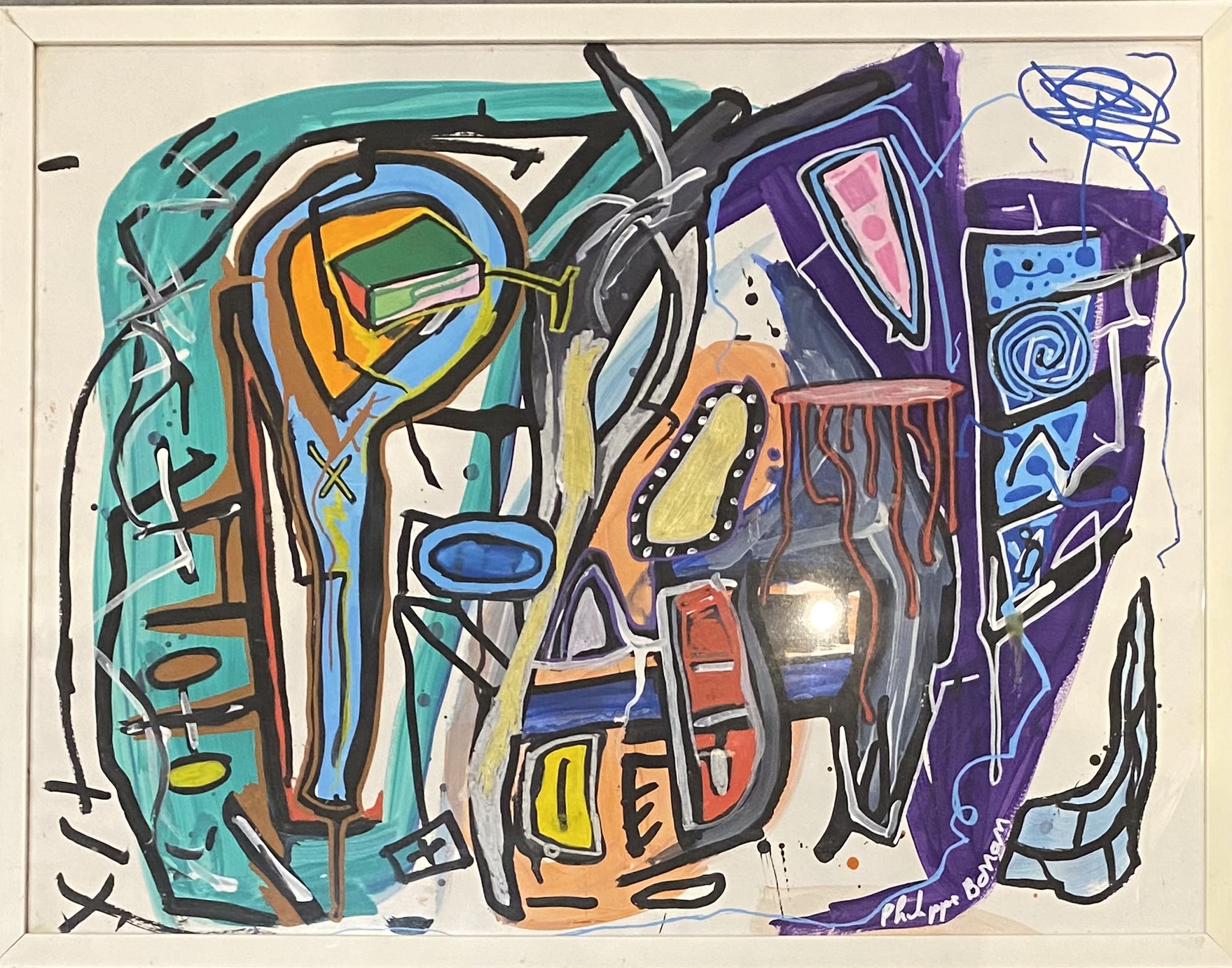 Sous Plexiglas et encadrement blanc.